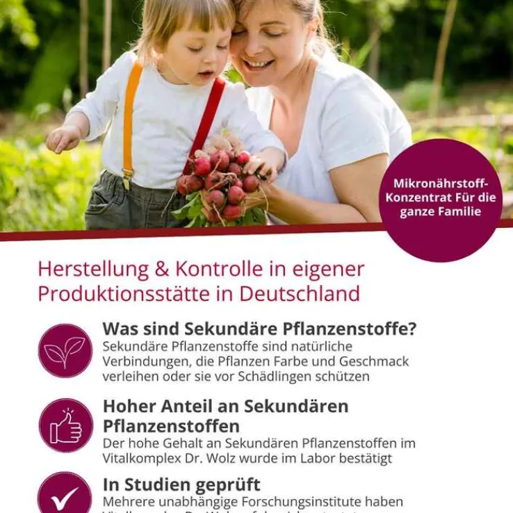 Der Vitalkomplex versorgt den Körper mit zahlreichen wichtigen Stoffen – Vitaminen, Mineralstoffen, Spurenelementen, und vor allem sekundären Pflanzenstoffen, den Schutzstoffen der Pflanzen, die für unsere Gesundheit so bedeutsam sind.