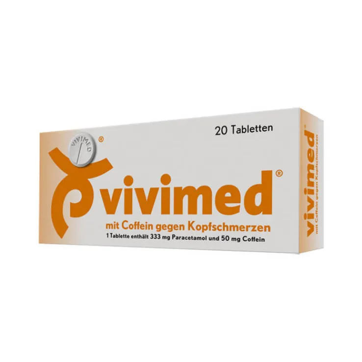 vivimed® mit Coffein gegen Kopfschmerzen. Wirkstoffe: Paracetamol und Coffein. Anwendungsgebiete: Leichte bis mäßig starke Schmerzen. Warnhinweise: Arzneimittel für Kinder unzugänglich aufbewahren. Bei Schmerzen oder Fieber ohne ärztlichen Rat nicht länger anwenden als in der Packungsbeilage vorgegeben. Apothekenpflichtig. Zu Risiken und Nebenwirkungen lesen Sie die Packungsbeilage und fragen Sie Ihre Ärztin, Ihren Arzt oder in Ihrer Apotheke. Dr. Gerhard Mann chem.-pharm. Fabrik GmbH, Brunsbütteler Damm 165/173, 13581 Berlin. (Stand: August 2020)