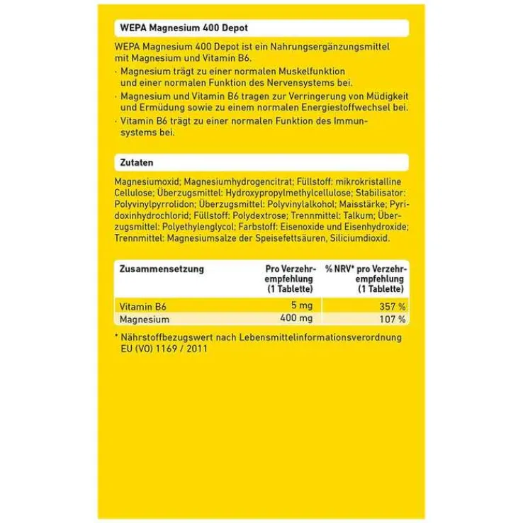 Wepa Magnesium 400 Depot + B6 Tabletten, 60 St