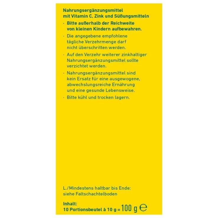 - Nahrungsergänzungsmittel mit Vitamin C, Zink und Süßungsmitteln sowie dem Ballaststoff Inulin