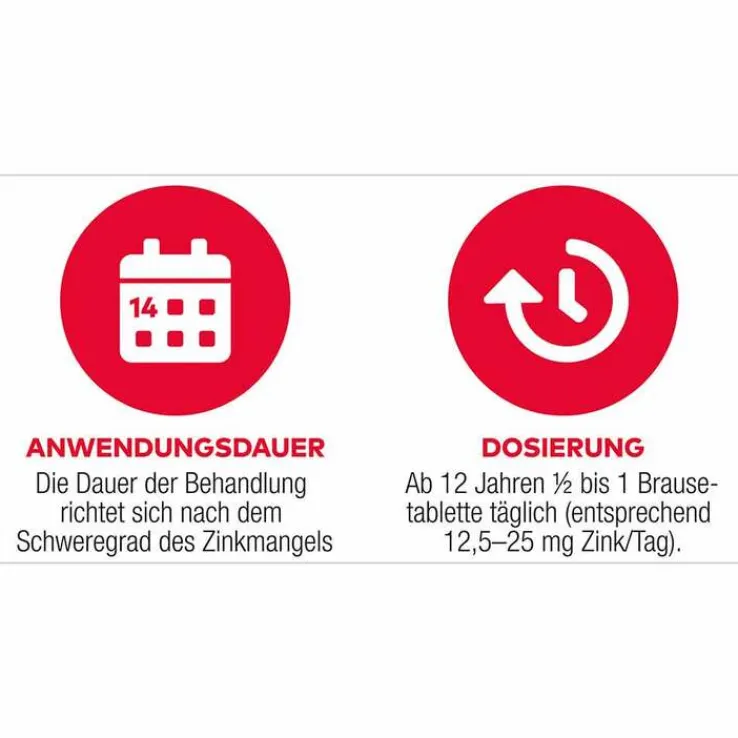 1-mal täglich ½-1 Brausetablette (entsprechend 12,5-25 mg Zink).