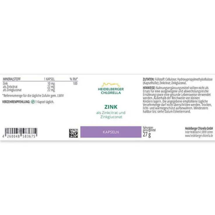 Artikelnummer: n. v. Kategorien: Vitamine & Mineralstoffe, Zink Schlagwort: Heidelberger Chlorella Marke: Heidelberger Chlorella