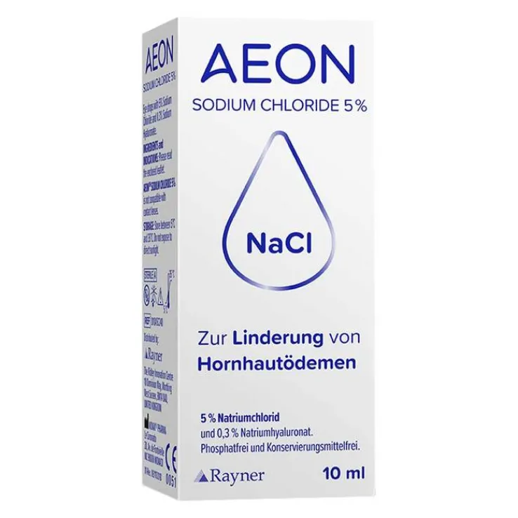 AEON SODIUM CHLORIDE 5 % ist eine phosphat- und konservierungsmittelfreie hypertonische Lösung für das Auge zur vorübergehenden Linderung der Symptome eines Hornhautödems.