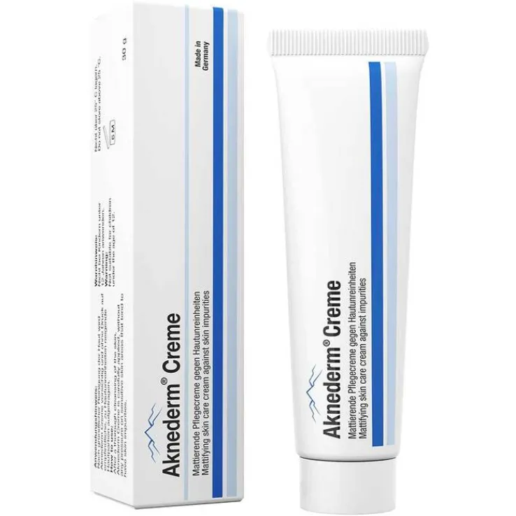 Aknederm Creme enthält natürliches helles Ölschiefer-Öl der Alpenregion, Zinkoxid und hochwertigen mikroporösen Kaolin. Die Creme ist eine parfümfreie mattierende Intensiv-Pflegefür ausgeprägte Hautunreinheiten (z. B. Pickel, Mitesser, unreine fettige Haut, Hautrötungen und entzündete Hautstellen).