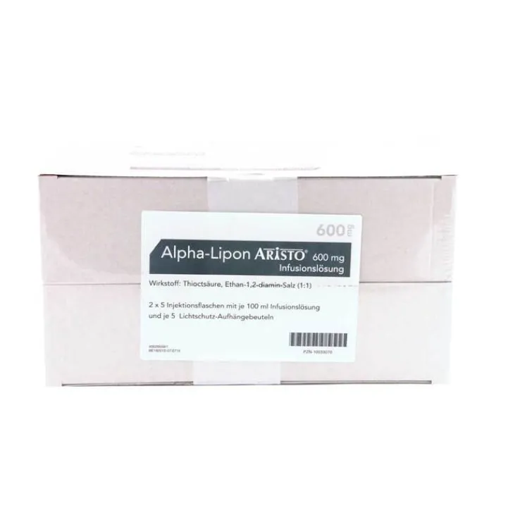Alpha-Lipon Aristo® 600 mg Infusionslösung.Wirkstoff: Thioctsäure, Ethan-1,2-diamin-Salz (1:1)/Thioctsäure. Missempfindungen bei diabetischer Nervenschädigung (Polyneuropathie). Apothekenpflichtig. Zu Risiken und Nebenwirkungen lesen Sie die Packungsbeilage und fragen Sie Ihre Ärztin, Ihren Arzt oder in Ihrer Apotheke. Packungsbeilage beachten. (Stand September 2021). Aristo Pharma GmbH, Wallenroder Straße 8-10, 13435 Berlin.