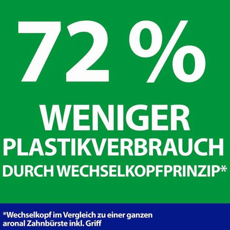 Im Vergleich zu einer normalen Zahnbürste inkl. Griff verbrauchen Sie durch das Wechselkopf-Prinzip 72% weniger Plastik.