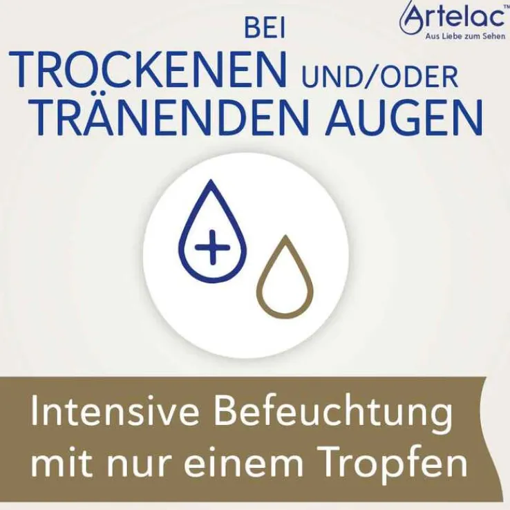 Artelac® Complete MDO® Augentropfen zur Befeuchtung trockener Augen lindern zielgerichtet die Defizite des natürlichen Tränenfilms und die Augenoberfläche ist bereits mit einem Tropfen rundum sicher gut versorgt. Die Augentropfen mit Lipiden schützen den Tränenfilm vor einer vermehrten Verdunstung, der natürliche Feuchtigkeitsspender Hyaluronsäure (0,24 %) und Glycerin binden Feuchtigkeit, das Carbomer befeuchtet und bindet zusätzlich Wasser. Anwender:innen erleben eine umgehende und intensive, langanhaltende Linderung ihrer Symptome.