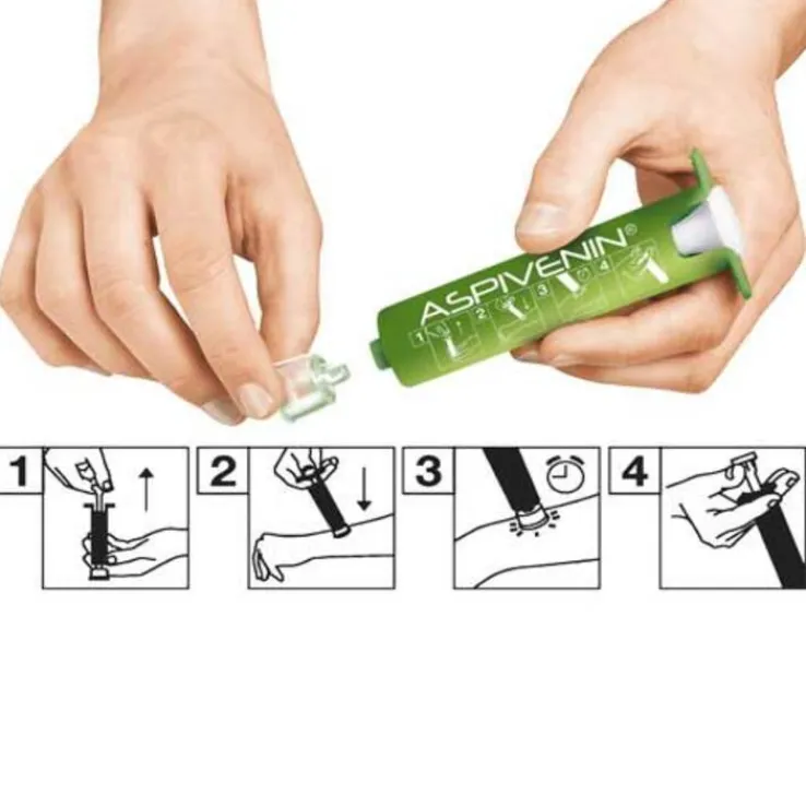 Mit Aspivenin erhalten Sie eine Unterdruck-Minipumpe zur Soforthilfe bei Hornissen-, Wespen-, Bienen-, Mückenstichen aber auch bei Ausschlag verursachenden Pflanzen, Fischen, Skorpionen und bei einer großen Anzahl von Schlangen.