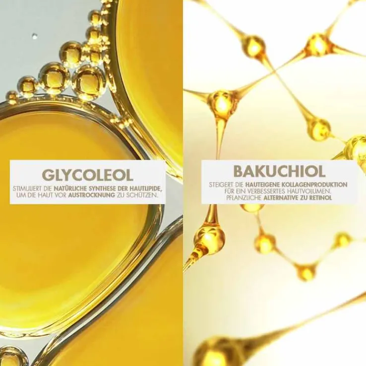 - Bakuchiol (1%): Steigert die hauteigene Kollagenproduktion für ein verbessertes Hautvolumen.