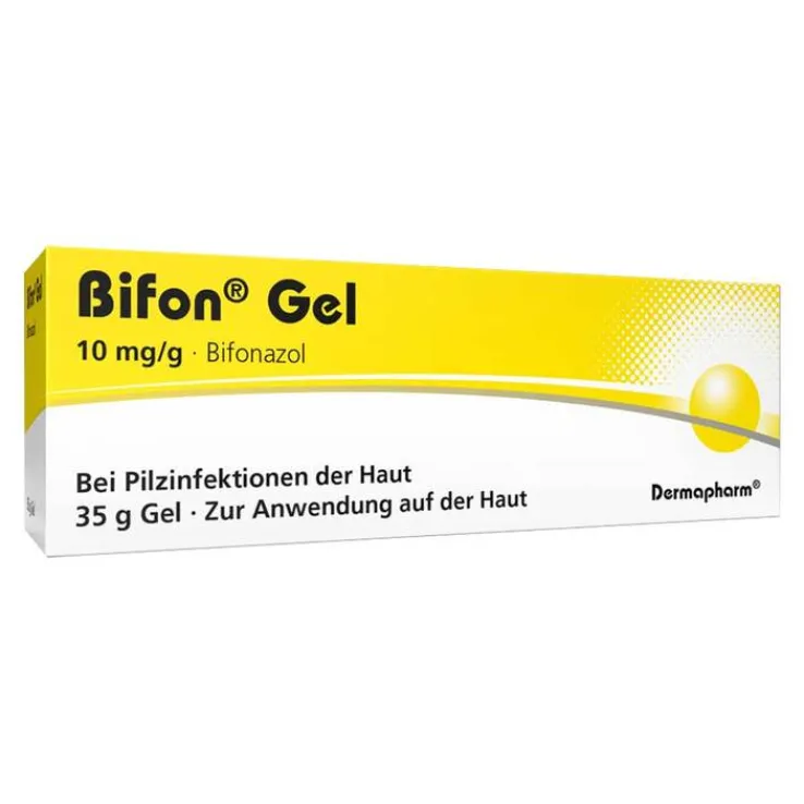 Bifon® Gel Wirkstoff: Bifonazol. Anwendungsgebiete: Mykosen der Haut, die durch Dermatophyten, Hefen, Schimmelpilze und andere Pilzarten, wie z.B. Malassezia furfur oder Corynebacterium minutissimum hervorgerufen werden. Warnhinweis: Enthält Benzylalkohol. Stand: 01/2020 Zu Risiken und Nebenwirkungen lesen Sie die Packungsbeilage und fragen Sie Ihre Ärztin, Ihren Arzt oder in Ihrer Apotheke.