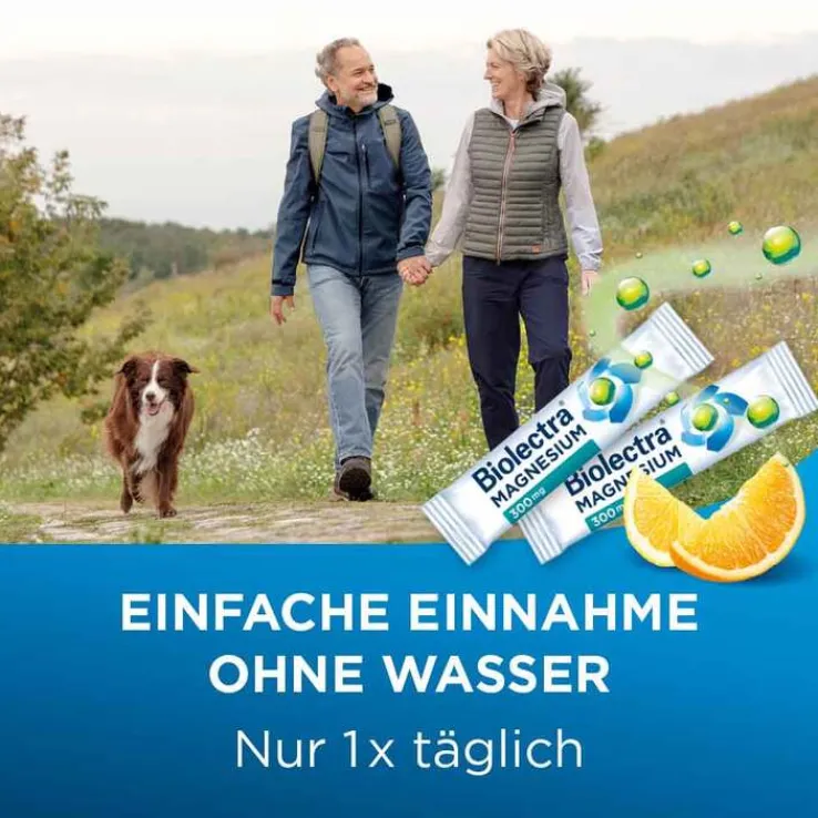 Die moderne Magnesium-Versorgung: Biolectra Magnesium Direct ist die zeitgemäße und praktische Magnesium-Versorgung, mit der man seine Magnesium-Speicher einfach wieder auffüllen kann. Dank der besonderen Darreichungsform als Micro-Pellets d. h. als kleine Kügelchen kann Biolectra Magnesium Direct ohne Flüssigkeit eingenommen werden. Bereits ein Stick täglich genügt, um die von der Deutschen Gesellschaft für Ernährung empfohlene Tagesdosis von 300 mg Magnesium aufzunehmen.