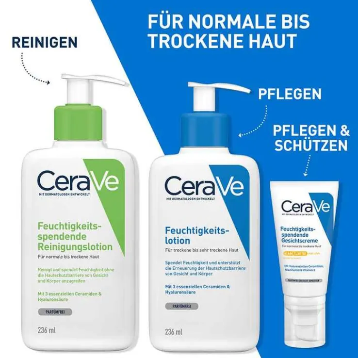 Die Augenpartie aussparen und bei Kontakt mit den Augen diese umgehend gründlich ausspülen. Die mit Dermatologen entwickelte Reinigungscreme eignet sich dank ihrer sanften Formel für die tägliche Anwendung. Noch bessere Ergebnisse erzielt sie in Kombination mit der (PZN 14017642) CeraVe Feuchtigkeitscreme.