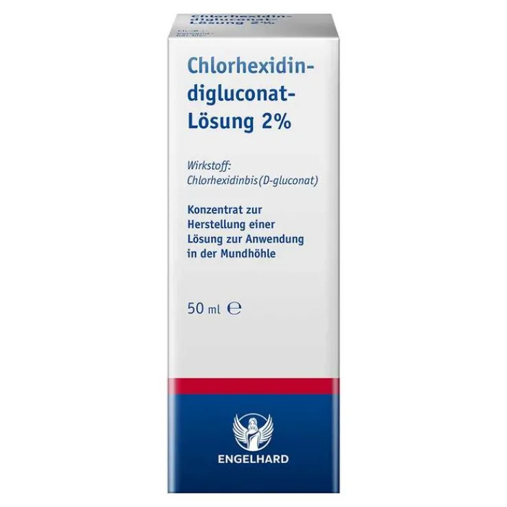 Chlorhexidindigluconat Lösung 2% Konzentrat zur Herstellung einer Lösung zur Anwendung in der Mundhöhle. Wirkstoff: Chlorhexidinbis(D-gluconat). Anwendungsgebiete: Zur vorübergehenden Keimzahlverminderung im Mundraum. Zur Unterstützung der Heilungsphase nach parodontalchirurgischen Eingriffen. Als vorübergehende unterstützende Therapie zur mechanischen Reinigung bei bakteriell bedingten Entzündungen von Zahnfleisch und Mundschleimhaut. Bei eingeschränkter Mundhygienefähigkeit. Zu Risiken und Nebenwirkungen lesen Sie die Packungsbeilage und fragen Sie Ihre Ärztin, Ihren Arzt oder in Ihrer Apotheke. Stand der Information: Januar 2014. Engelhard Arzneimittel GmbH & Co.KG, Herzbergstr. 3, 61138 Niederdorfelden. Telefon: 06101/539-300. Fax: 06101/539-315. Internet: www.engelhard.de. e-mail: [email protected]