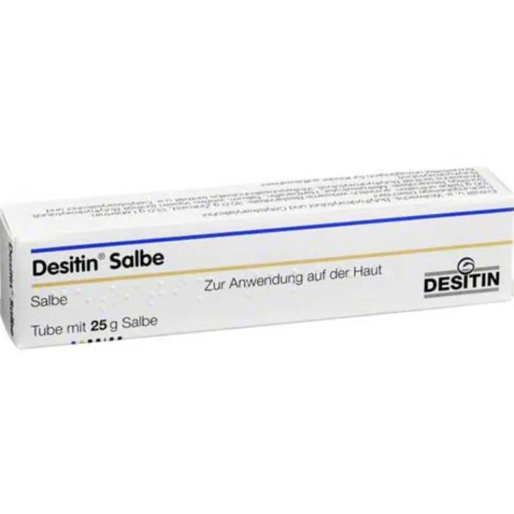 Die Inhaltsstoffe von Desitin Salbe ist Zinkoxid und Lebertran. Neben der entzündungshemmenden Wirkung von Zinkoxid ist Lebertran reich an Vitamin A und D und ungesättigten Fettsäuren. Diese Kombination pflegt die Haut und unterstützt gleichzeitig ihre Heilung.