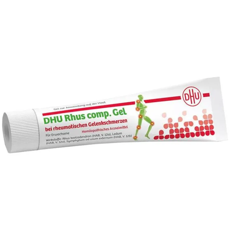 DHU Rhus comp. GelEnthält 15 Vol.-% Alkohol. Packungsbeilage beachten! Anwendungsgebiete: Die Anwendungsgebiete leiten sich von den homöopathischen Arzneimittelbildern ab. Dazu gehören: Rheumatische Schmerzen in den Gelenken. Zu Risiken und Nebenwirkungen lesen Sie die Packungsbeilage und fragen Sie Ihre Ärztin, Ihren Arzt oder in Ihrer Apotheke. Deutsche Homöopathie-Union DHU-Arzneimittel GmbH & Co. KG, Karlsruhe (Stand: Sept. 2019)