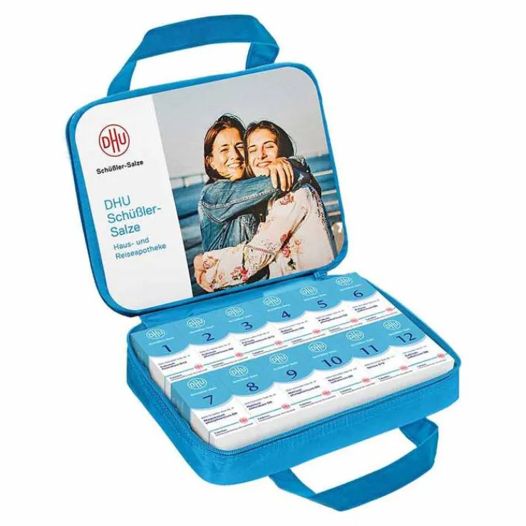 Ob unterwegs, auf Reisen oder als praktische Ergänzung zur eigenen Hausapotheke: Die DHU Schüßler- Salze 1 bis 12 gibt es jetzt im besonders handlichen Format – griffbereit in jeder Situation – und das hochwertig und ansprechend verpackt. Die Tasche ist mit einem Reißverschluß zu schließen und enthält die Salze 1 bis 12 in Tablettenform und in der Regelpotenz zu je 80 Stück.