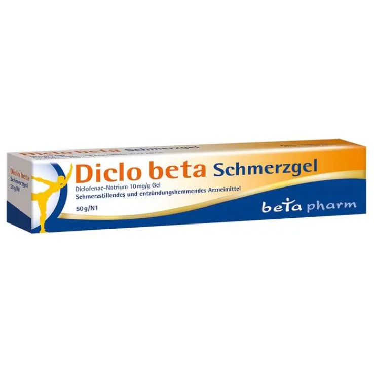 Diclo beta Schmerzgel. Wirkstoff: Diclofenac-Natrium. Anw.: Erw.: Zur symptomat. Behandl. von Schmerzen bei akuten Zerrungen, Verstauchungen od. Prellungen in Folge stumpfer Traumen, z.B. Sport- u. Unfallverletzungen; der gelenknahen Weichteile (z.B. Schleimbeutel, Sehnen, Sehnenscheiden, Bänder, Muskelansätze u. Gelenkkapseln) bei Arthrose der Knie- u. Fingergelenke; bei Epicondylitis (Entzündung der Sehnenansätze im Bereich des Ellenbogens, auch Tennisellenbogen bzw. Golferellenbogen genannt);; bei akuten Muskelschmerzen z.B. im Rückenbereich. Jugendl. über 14 J.: Zur Kurzzeitbehandlung. Zur lokalen, symptomat. Behandl. von Schmerzen bei akuten Prellungen, Zerrungen od. Verstauchungen infolge eines stumpfen Traumas. Warnhinw.: Propylenglycol kann Hautreizungen hervorrufen. Zu Risiken und Nebenwirkungen lesen Sie die Packungsbeilage und fragen Sie Ihre Ärztin, Ihren Arzt oder in Ihrer Apotheke. betapharm Arzneimittel GmbH, 86156 Augsburg | www.betapharm.de | PT 314825