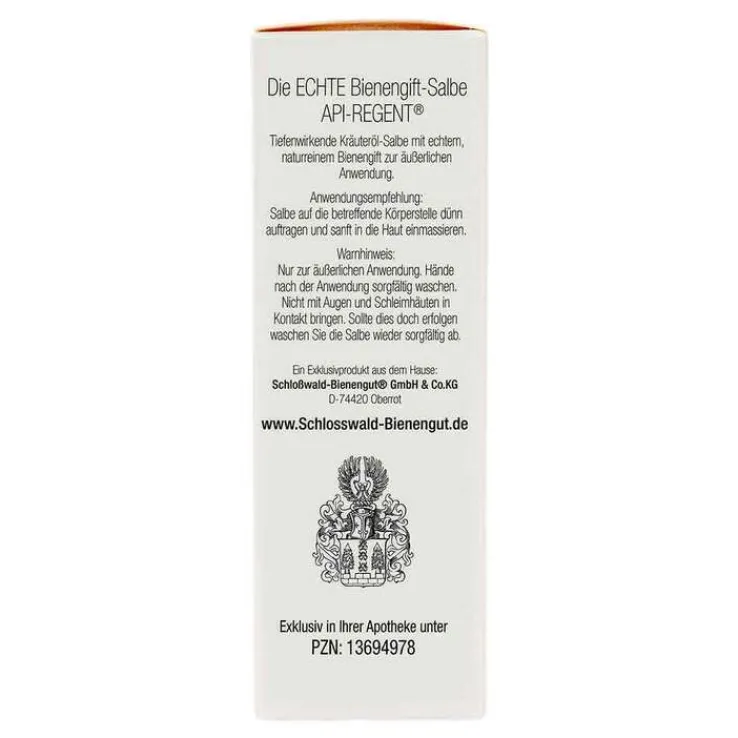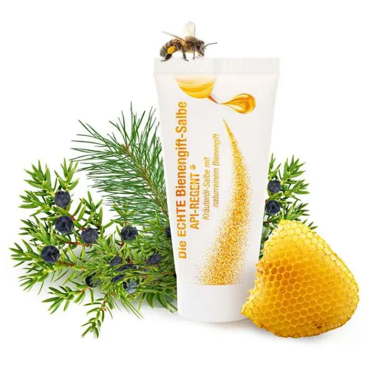 Die Echte Bienengift-Salbe Api-Regent ist eine Kräuterölsalbe mit echtem, naturreinem Bienengift zur äußerlichen Anwendung. Sorgfältig und rein natürlich zusammengesetzt, sind in ihr das Jahrtausende alte Wissen um die positive Wirkung des Bienengiftes, sowie das Beste aus feinsten Kräuter-Essenzen und -Ölen aus aller Welt kombiniert.