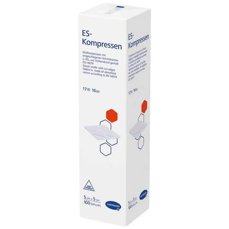 Die ES-Kompressen verfügen über eine gute Saugfähigkeit, sind luftdurchlässig, weich und geschmeidig. Durch die eingeschlagenen Schnittkanten können ES-Kompressen mehrfach aufgeklappt in größeren Formaten verwendet werden, ohne dass störende Randfäden auftreten. Verbrauchsgerechte Kompressen- und Packungsgrößen erlauben immer einen wirtschaftlichen Einsatz.