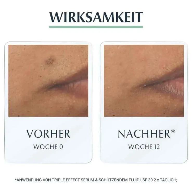 Das Eucerin DERMOPURE Schützenden Fluid LSF 30 mit 3-fach Wirkung ist ideal für unreine Haut. Die Gesichtspflege mit Lichtschutzfaktor 30 sowie einem UVA/B-Filter schützt Pickelmale vor Verdunkelung. Denn gerade, wenn die Haut ungeschützt der Sonnenstrahlung ausgesetzt ist, kann es zu dieser sogenannten post-inflammatorischen Hyperpigmentierung kommen. Das Fluid eignet sich somit als ideal als Sonnencreme für unreine Haut, denn es wirkt auch der Neuentstehung von Pickelmalen entgegen.