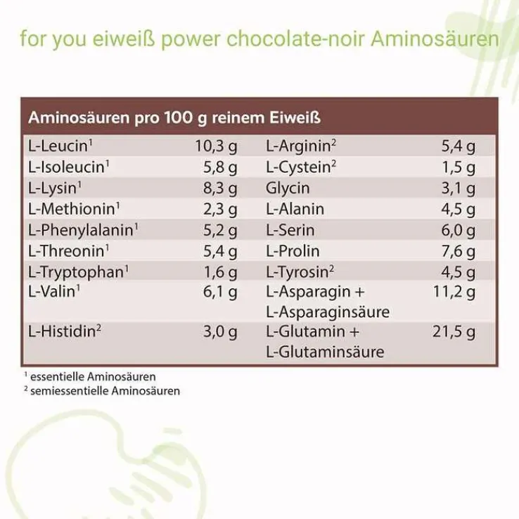 - Hühnereieiweiß enthält bestimmte Aminosäuren, welche nur limitiert in den drei anderen Eiweißpulver-Komponenten enthalten sind.
