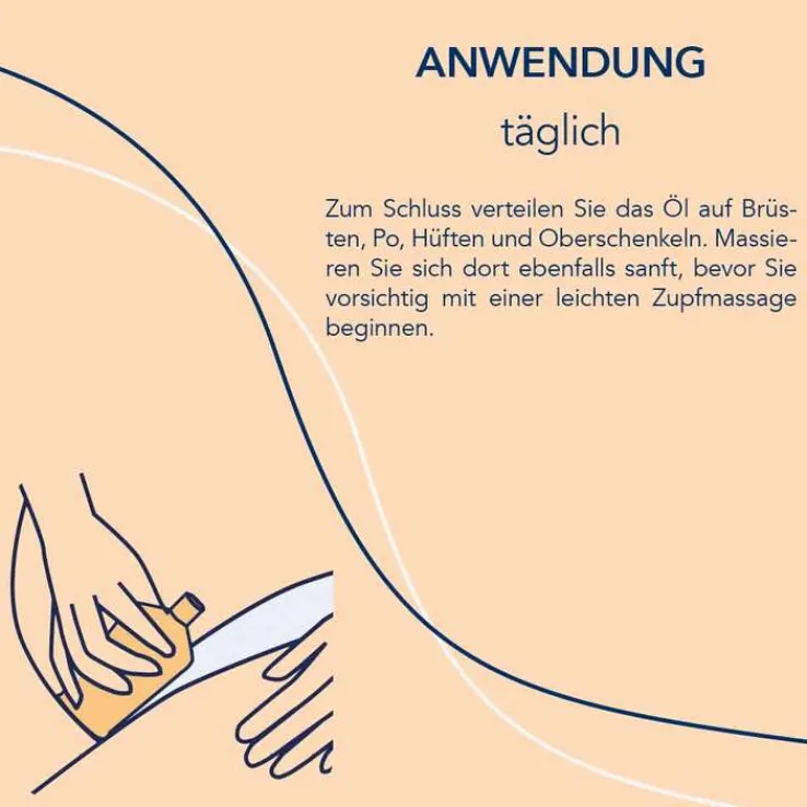 - Frei Öl Massage Öl für Schwangere großzügig auf dem Bauch verteilen und mit streichenden Bewegungen sanft in Richtung Bauchnabel einmassieren.