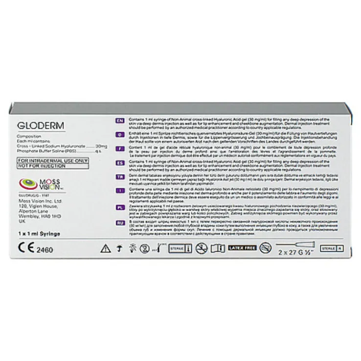 Gloderm 30L hat einen Hyaluronsäureanteil von 30 mg/ml, ist natürlich und besitzt eine geringe Vernetzung. Daher ist es besonders zur Auffüllung moderater Falten und zur Lippenformung geeignet. Hergestellt ist es mittels Ionen-bindender Selbstvernetzungstechnologie (IBS-pat.pend.).