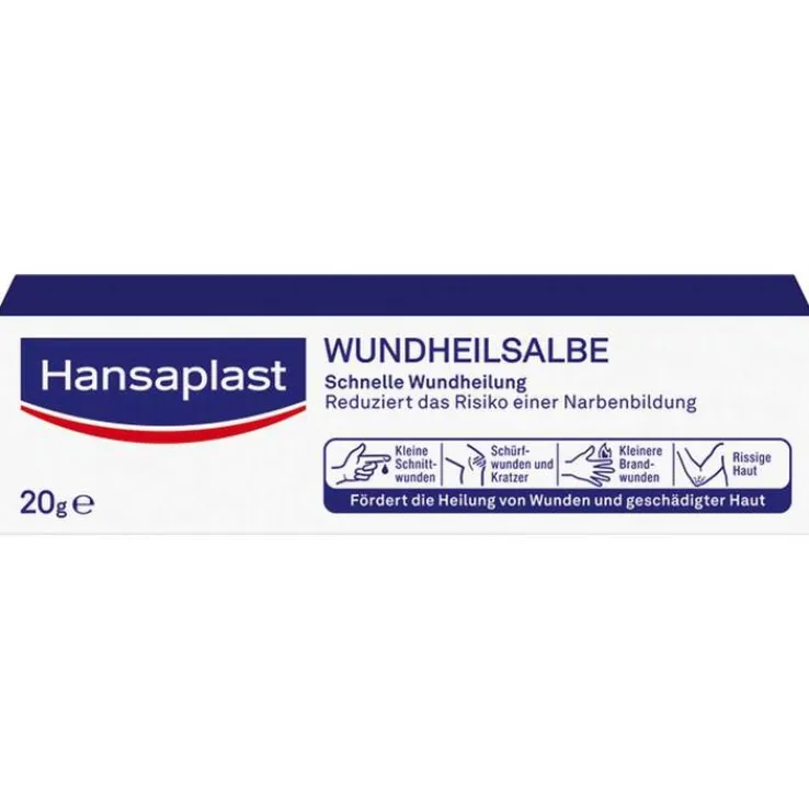 Die Hansaplast Wundheilsalbe unterstützt die natürliche Heilung von kleineren, oberflächlichen Wunden wie zum Beispiel Schnittwunden, Schürfwunden, Kratzern und kleineren Brandwunden 1. und 2. Grades. Die Hansaplast Wundheilsalbe kann in jeder Phase des Heilungsprozesses auf oberflächliche, offene Wunden sowie auf geschädigte Haut aufgetragen werden.