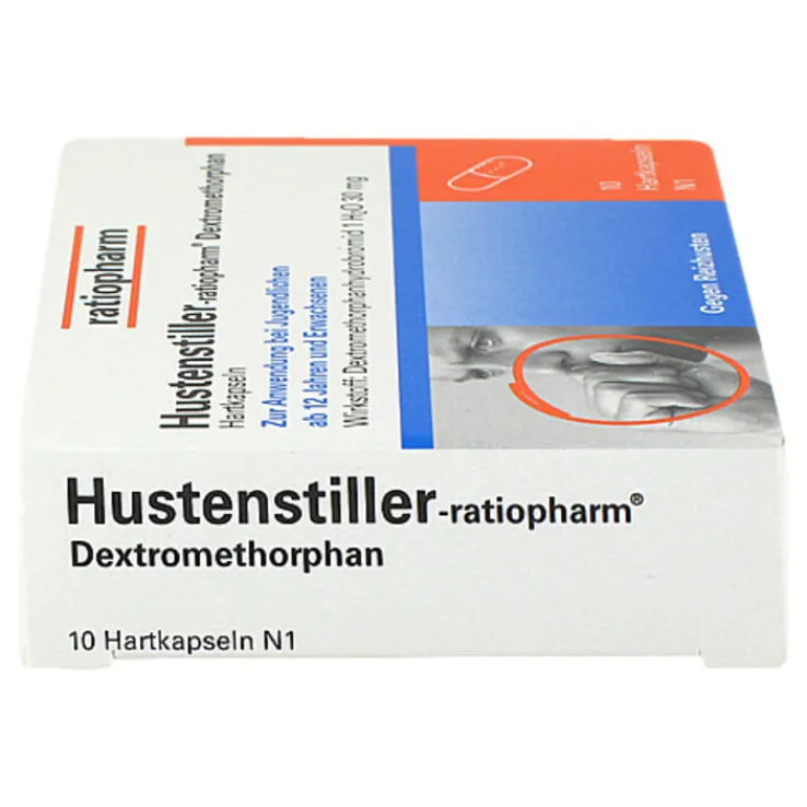 Hustenstiller-ratiopharm® Dextromethorphan.Wirkstoff: Dextromethorphanhydrobromid 1 H2O. Anwendungsgebiete: Symptomatische Behandlung des Reizhustens (unproduktiver Husten). Warnhinweis: AM enth. Lactose! Apothekenpflichtig. Zu Risiken und Nebenwirkungen lesen Sie die Packungsbeilage und fragen Sie Ihre Ärztin, Ihren Arzt oder in Ihrer Apotheke. 3/21.