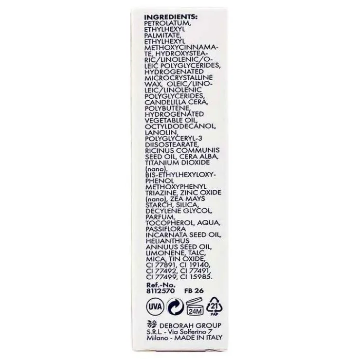 PETROLATUM, ETHYLHEXYL PALMITATE, ETHYLHEXYL METHOXYCINNAMATE, HYDROXYSTEARIC/LINOLENIC/OLEIC POLYGLYCERIDES, HYDROGENATED MICROCRYSTALLINE WAX, OLEIC/LINOLEIC/LINOLENIC POLYGLYCERIDES, CANDELILLA CERA, POLYBUTENE, HYDROGENATED VEGETABLE OIL, OCTYLDODECANOL, LANOLIN, POLYGLYCERYL-3 DIISOSTEARATE, RICINUS COMMUNIS SEED OIL, CERA ALBA, TITANIUM DIOXIDE (nano), BIS-ETHYLHEXYLOXYPHENOL METHOXYPHENYL TRIAZINE, ZINC OXIDE (nano), ZEA MAYS STARCH, SILICA, DECYLENE GLYCOL, PARFUM, TOCOPHEROL, AQUA, PASSIFLORA INCARNATA SEED OIL, HELIANTHUS ANNUUS SEED OIL, LIMONENE, TALC, MICA, TIN OXIDE, CI 77891, CI 19140, CI 77492, CI 77491, CI 77499, CI 15985.