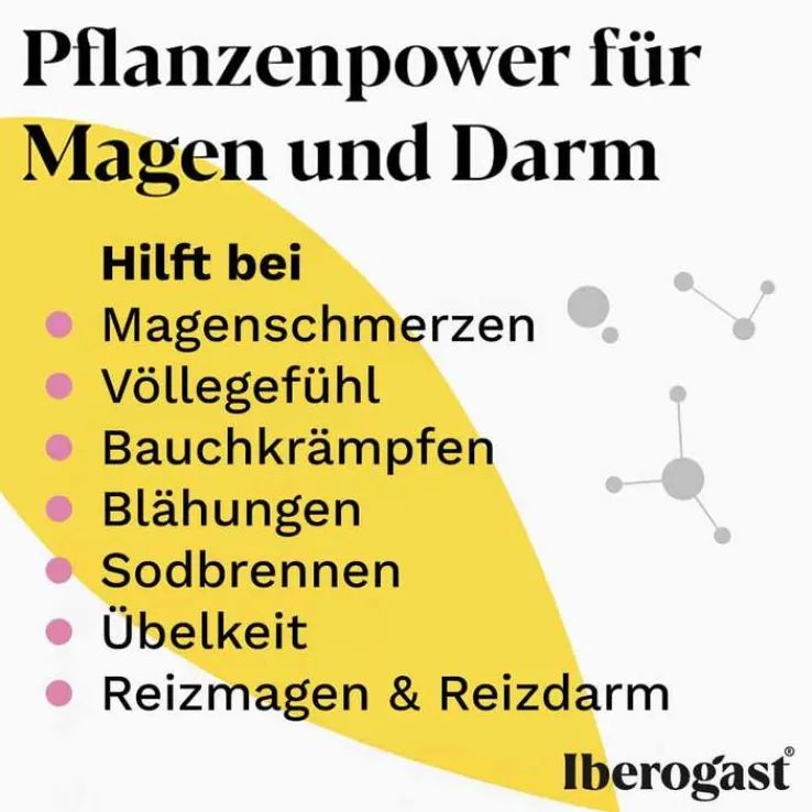 Iberogast® ADVANCE. Pflanzliches Arzneimittel bei Magen-Darm-Erkrankungen. Behandlung von funktionellen Magen-Darm-Erkrankungen wie Reizmagensyndrom (funktionelle Dyspepsie) und Reizdarmsyndrom (Colon irritabile). Das Arzneimittel enthält 240 mg Alkohol (Ethanol) pro 20 Tropfen. Stand: 09/2023. Bayer Vital GmbH, Kaiser-Wilhelm-Allee 70, 51373 Leverkusen, Deutschland. Zu Risiken und Nebenwirkungen lesen Sie die Packungsbeilage und fragen Sie Ihre Ärztin, Ihren Arzt oder in Ihrer Apotheke.