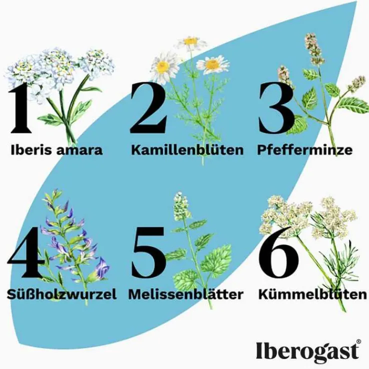 Iberogast® ADVANCE enthält eine Kombination aus 6 Heilpflanzenextrakten, die an verschiedenen Stellen des Magen-Darm-Trakts ihre Wirkung entfalten (Multi-Target-Prinzip) und auf diese Weise verschiedene Beschwerden im Magen-Darm-Bereich gleichzeitig lindern kann.