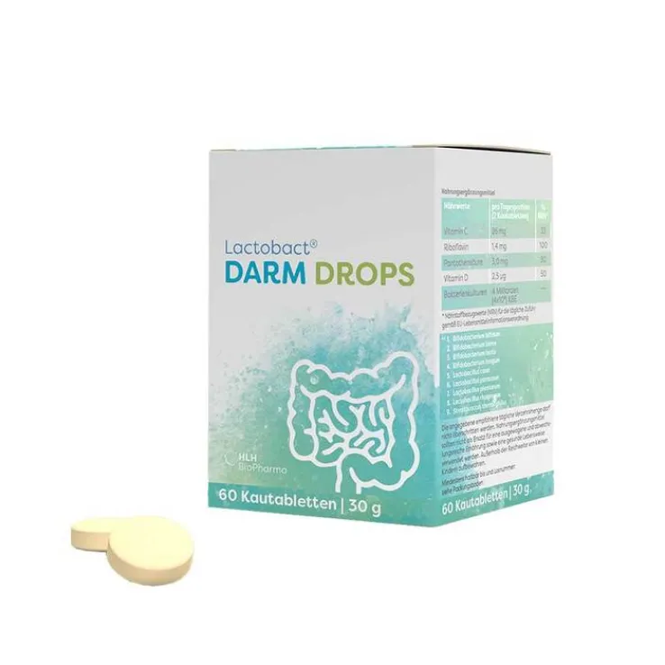 Lactobact Darm Drops ist die einzigartige Kombination aus hochwertigen Bakterienkulturen und wertvollen Vitaminen. Als Kautablette mit natürlichem Zitronengeschmack ist die Einnahme spielend einfach und überall durchführbar. Denn durch die patentierte Schutztechnologie Intelicaps wird gewährleistet, dass die Mikroorganismen lebendig in den Darm gelangen.
