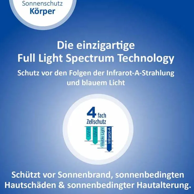 Sonnenstrahlen gibt es in verschiedenen Wellenlängen. Sie haben verschiedene Auswirkungen auf die Haut, wirken jedoch alle zellschädigend. Daher ist es wichtig einen Sonnenschutz zu verwenden, der rundum schützt. Dank einzigartigem 4-fach Zellschutz schützt das Ladival® Allergische Haut Sonnenschutz-Gel vor UV-A, UV-B, Infrarot-A Strahlen und sichtbarem Licht (einschließlich blauem Licht).