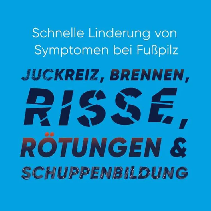- Lindert 5 Symptome von Fußpilz: Bei einer täglichen Anwendung über einen Zeitraum weniger Tage werden fünf Fußpilzsymptome schnell und wirksam gelindert. Dazu gehören der oft auftretende Juckreiz und das Brennen an den Füßen sowie die Minimierung von schmerzhaften Rissen, Schuppung und Rötung der Haut.
