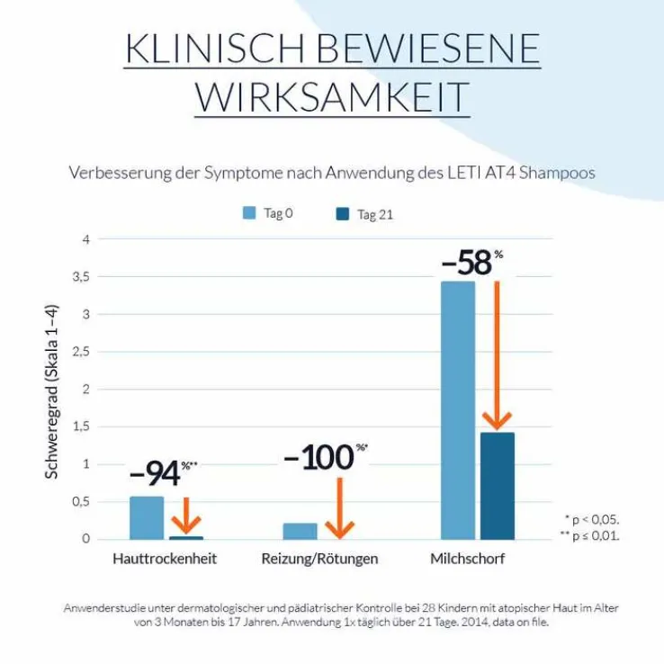 letiAT4 Shampoo ist eine spezielle Haar- und Kopfhautpflege für Säuglinge, Kinder und Erwachsene mit den Zeichen atopischer Haut.
