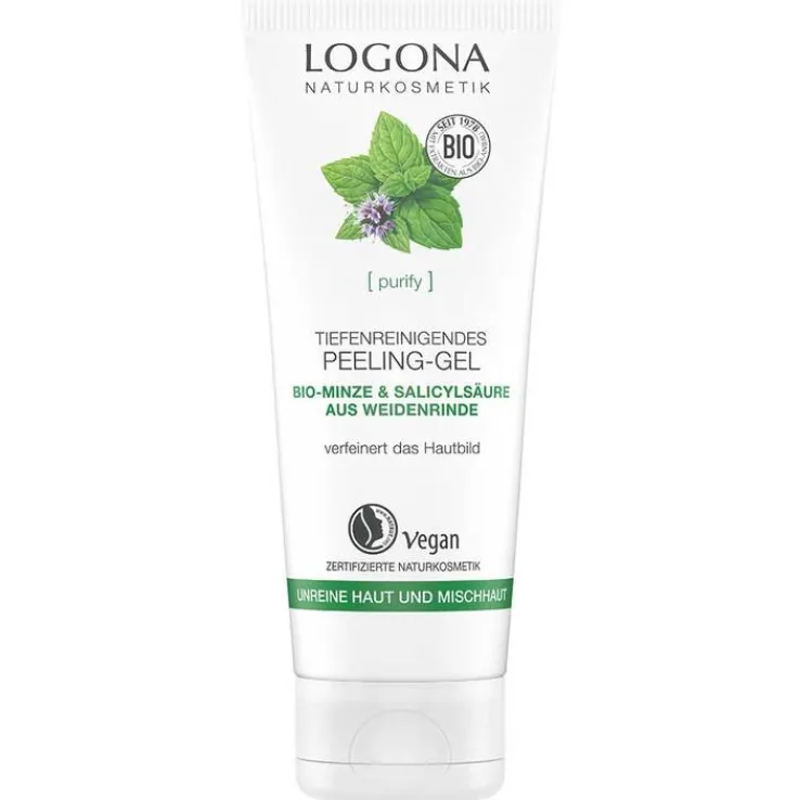 Das Logona Purify tiefenreinigende Peeling-Gel verfeinert und erfrischt das Hautbild. Die effektive Formulierung mit Bio-Minze, natürlicher Salicylsäure aus der Weidenrinde und Peelingkörpern aus wertvollen Jojobaperlen und natürlicher Kieselerde peelt sanft und befreit die Haut porentief von abgestorbenen Hautschüppchen, Unreinheiten und Schmutz. Geeignet für die Haut in der Pubertät und für zu Unreinheiten neigende Haut.