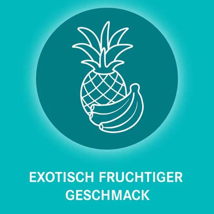 Sonstige Bestandteile: Croscarmellose-Natrium, Aspartam (E951), Magnesiumstearat (Ph. Eur.) [pflanzlich], Mannitol (Ph. Eur.), Fantasie-Frucht-Aroma, Pulver, UltraSeal 151, S-117772, Givaudan (enthält Arabisches Gummi, Saccharose, Maltodextrin, Triacetin, Propylenglycol und Aromen) und Bananen-Aroma, Pulver, 501010 AP 0551, Firmenich (enthält Maltodextrin und Aromen)