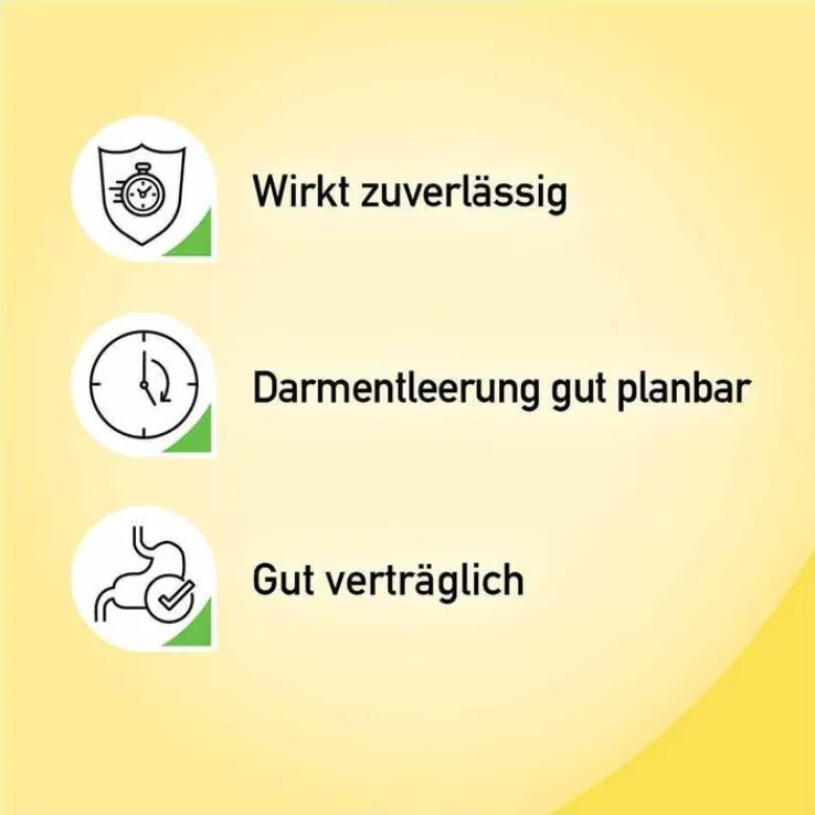 Die Einnahme erfolgt am besten abends oder morgens nüchtern unzerkaut mit reichlich Flüssigkeit. Die Einnahme am Abend führt nach ca. 10 Stunden zur Darmentleerung. Die morgendliche Nüchterneinnahme führt nach ca. 6 Stunden zur Darmentleerung.