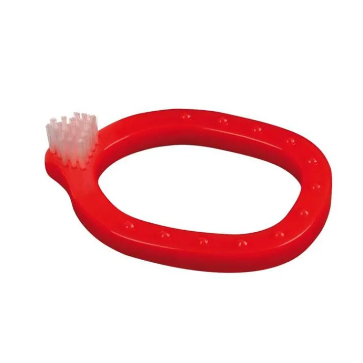 - Beißring mit besonders weichem Borstenfeld.