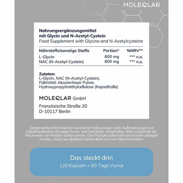 Moleqlar Glynac Glycine & N-Acetylcysteine Kapseln, 120 St