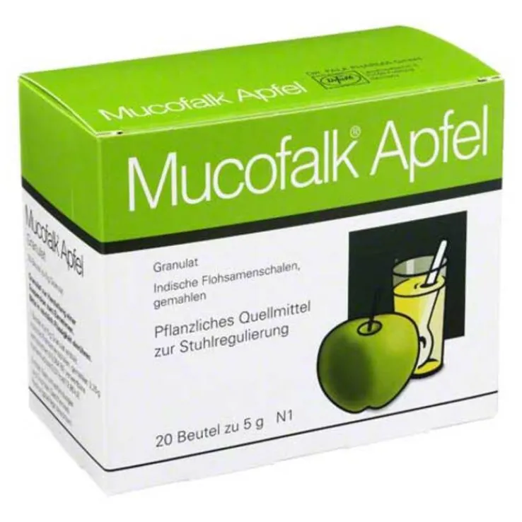 zur unterstützenden Behandlung bei Durchfall und Reizdarmsyndrom: Erwachsene und Heranwachsende ab 12 Jahren nehmen 2- bis 6-mal täglich den Inhalt eines Portionsbeutels Mucofalk® Apfel nach Einrühren in reichlich Flüssigkeit (mindestens 150 ml) ein.