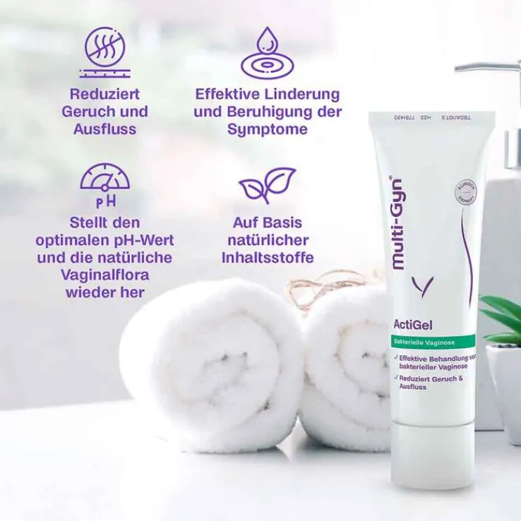 - Multi-Gyn® ActiGel verbessert die Scheidenflora, unterstützt das Gewebe bei der Regeneration und optimiert den vaginalen pH-Wert.