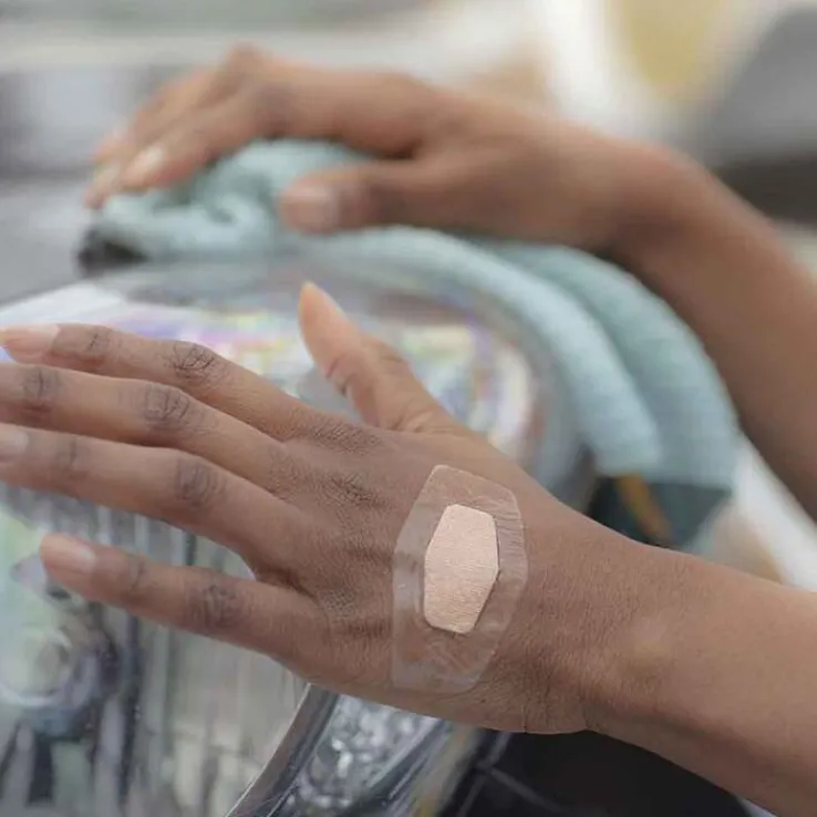 4. Gehen Sie noch einmal mit Ihrem Finger über die Pflasterfolie, sodass das Pflaster überall an der Haut anliegt
