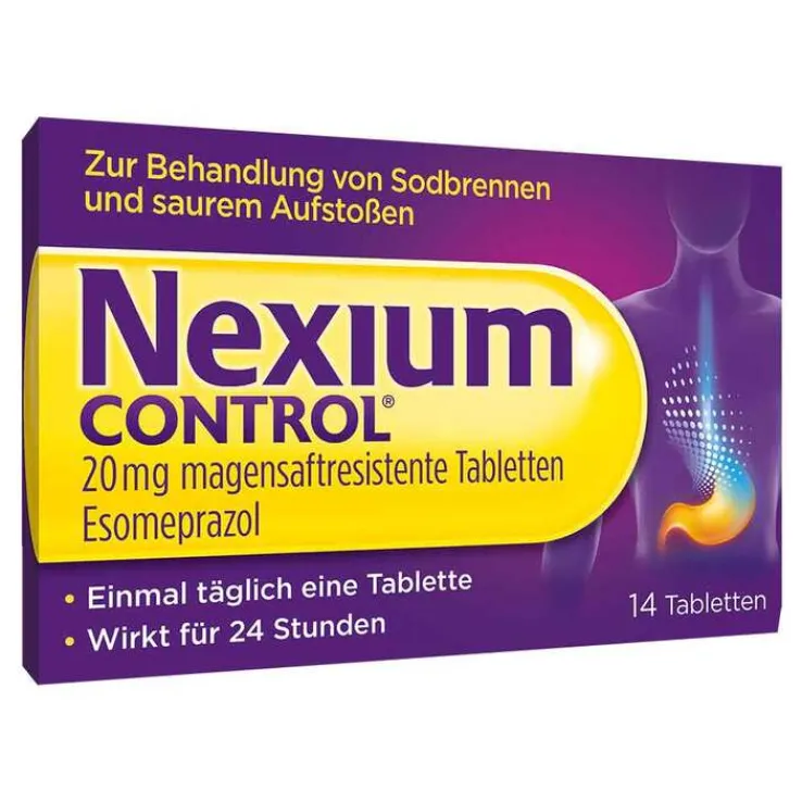 Nexium CONTROL® 20 mg magensaftresistente Tabletten. Wirkstoff: Esomeprazol. Zur Kurzzeitbehandlung von Refluxsymptomen (Sodbrennen, saures Aufstoßen) bei Erwachsenen. Enth. Sucrose (Zucker). Zu Risiken und Nebenwirkungen lesen Sie die Packungsbeilage und fragen Sie Ihre Ärztin, Ihren Arzt oder in Ihrer Apotheke. Stand: Mai 2016