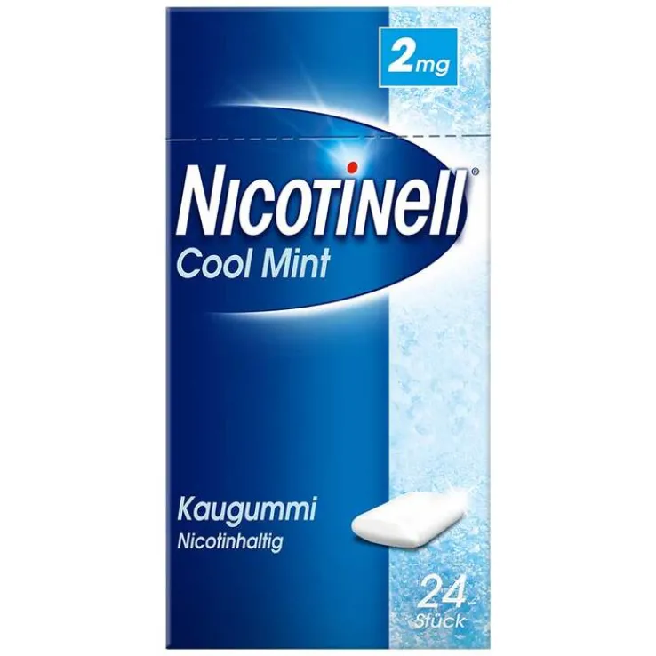 NICOTINELL Kaugummi 2 mg Cool Mint. Wirkstoff: Nicotin. Anwendungsgebiete: Zur Linderung von Nicotinentzugssymptomen, zur Unterstützung der Raucherentwöhnung bei Nicotinabhängigkeit. Raucher, die zurzeit nicht in der Lage sind, sofort mit dem Rauchen vollständig aufzuhören, können NICOTINELL Kaugummi zunächst zur Verringerung ihres Zigarettenkonsums (Rauchreduktion) verwenden, um auf diesem Wege den Einstieg in den Rauchausstieg zu erreichen. Die Stärke zu 4 mg ist angezeigt, wenn es zu schweren Entzugserscheinungen kommt. Eine Beratung und Betreuung des Patienten erhöhen in der Regel die Erfolgsraten. Warnhinweis: Enthält Levomenthol, Sorbitol (Ph.Eur), Mannitol (Ph.Eur.), Xylitol, Natriumverbindungen und Butylhydroxytoluol (Ph.Eur.). Apothekenpflichtig. Stand: 03/2019. Zu Risiken und Nebenwirkungen lesen Sie die Packungsbeilage und fragen Sie Ihre Ärztin, Ihren Arzt oder in Ihrer Apotheke.