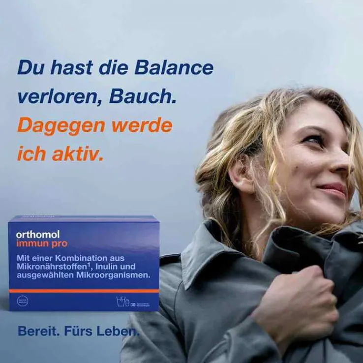 Orthomol Immun pro Granulat ist ein Nahrungsergänzungsmittel mit einer Kombination aus Mikronährstoffen, Inulin und ausgewählten Mikroorganismen.
