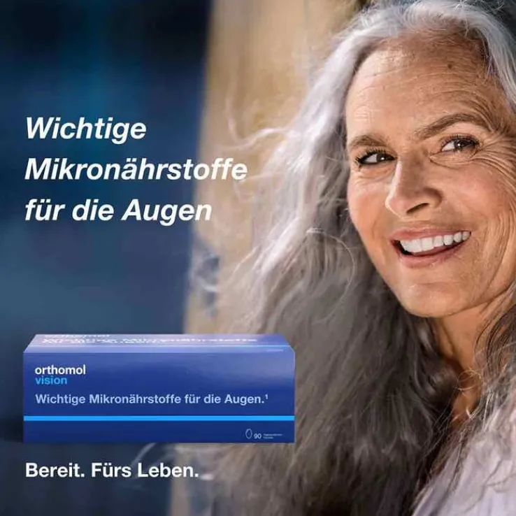 Orthomol Vision ist ein Nahrungsergänzungsmittel mit einer ausgewogenen Kombination aus gezielt dosierten Mikronährstoffen für die Augen.* Mit Vitamin A, Vitamin B2 (Riboflavin), Zink und der Omega-3-Fettsäure DHA zur Aufrechterhaltung der normalen Sehkraft. Ergänzt mit Lutein und Zeaxanthin.
