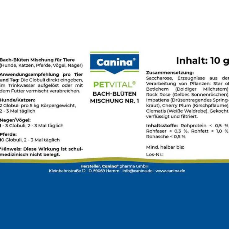 Petvital Bachblüten Nr.1 Globuli vet. (für Tiere), 10 g