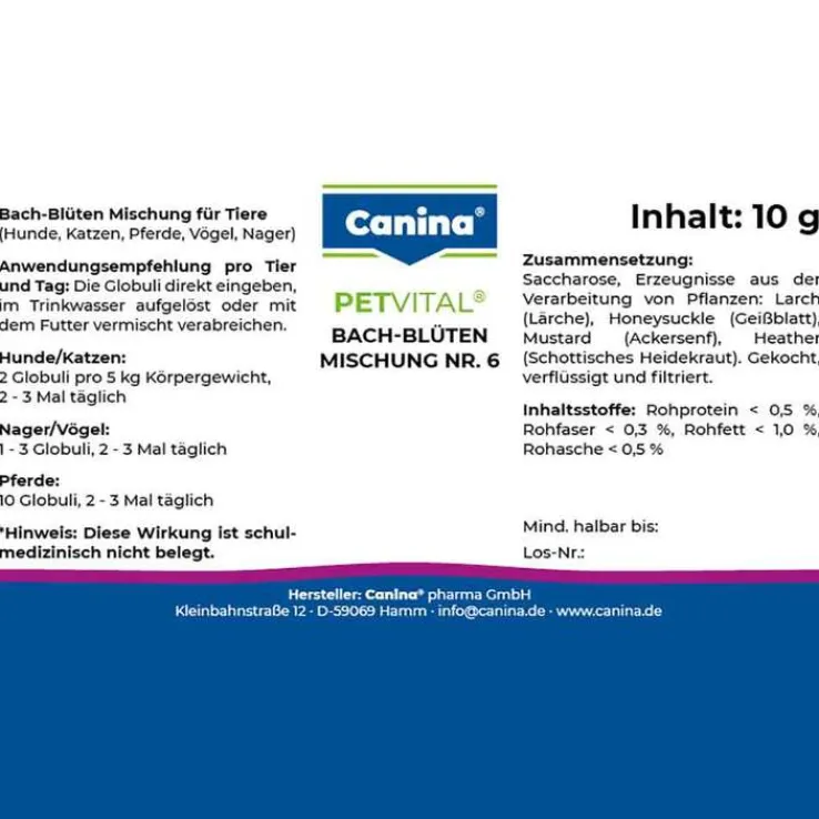 Petvital Bachblüten Nr.6 Globuli vet. (für Tiere), 10 g